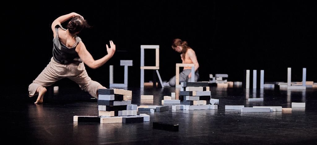 In front of a stage with hundreds of wooden bricks, they move in an endless loop of destruction and construction. Images emerge in the shifting landscape - fragments that reflect ruins, battles and aftermath - evoking scenes that inevitably recall wars and conflicts, aligning the work with the tensions of our present.